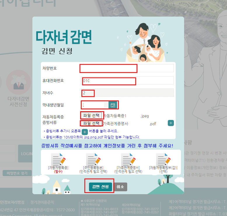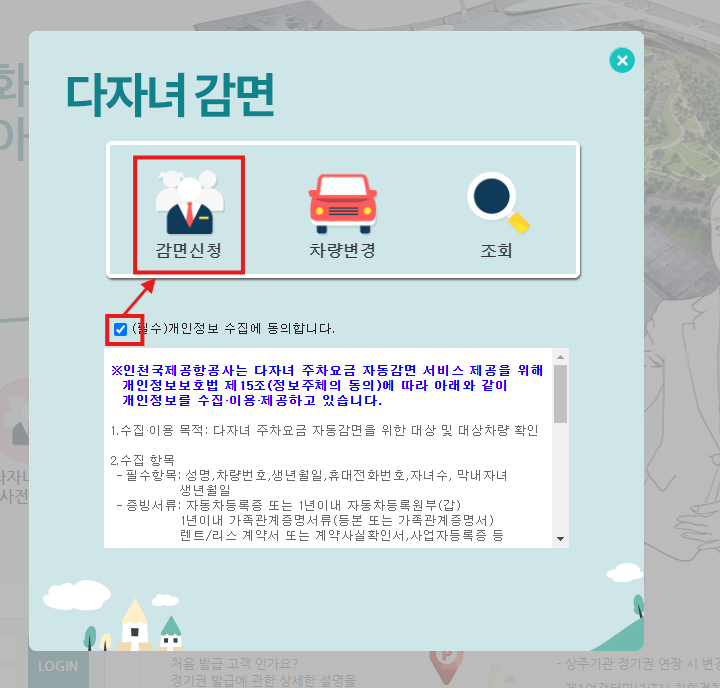 인천공항 주차장 다자녀 감면신청 방법