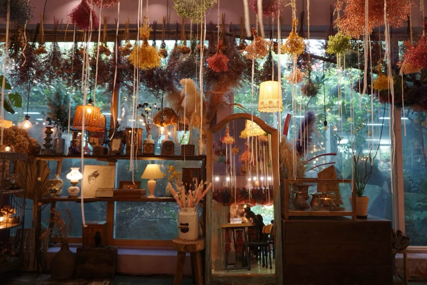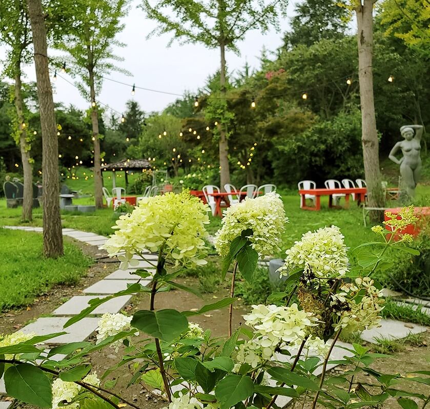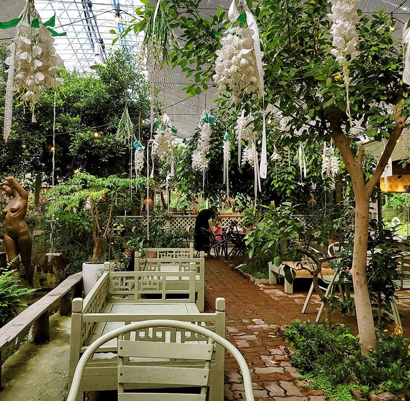리리스카페는 개화예술공원을 대표하는 건물이라고도 할 수 있는데요, 사진에서 보다시피 수많은 드라이플라워로 장식되어 있어 몽롱한 분위기를 연출합니다.