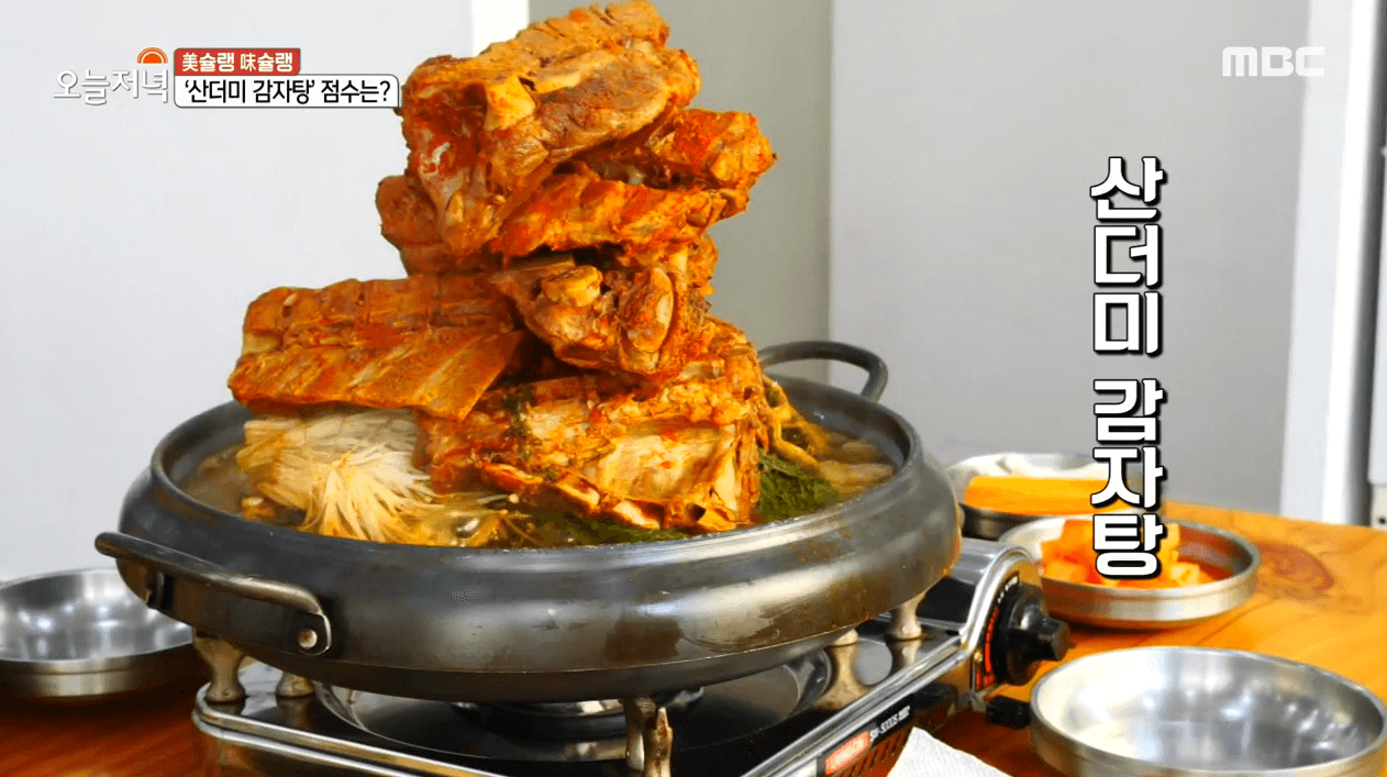 | 뼈 탑 감자탕(MBC 생방송오늘저녁 방송 캡쳐) | 해물 간장 뼈찜(MBC 생방송오늘저녁 방송 캡쳐) |