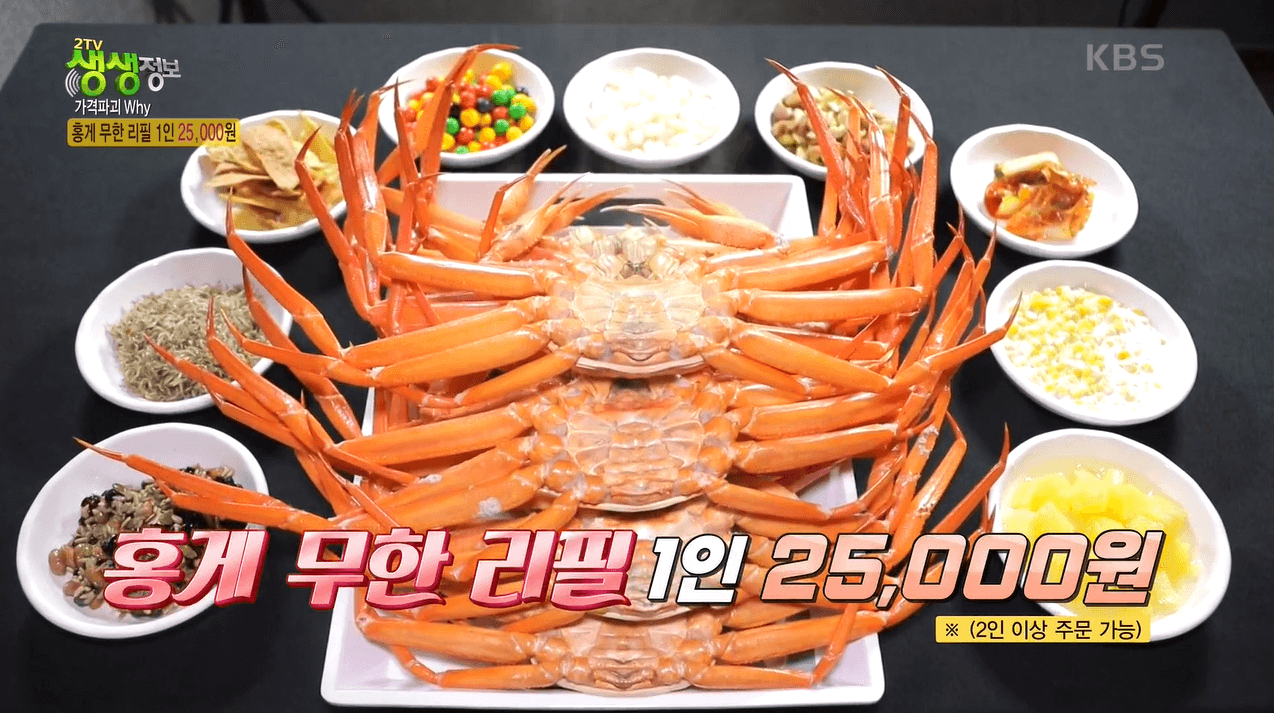 지난 10월 29일 2153회 [2TV 생생정보]에는 홍게 무한 리필 맛집이 소개되었다. 가성비 좋은 맛집을 소개해주는 코너인 <가격파괴 Why>에 소개된 맛집은 1인 25,000원에 홍게를 무한리필로 제공한다. 그 주인공은 바로 포항시 북구에 위치한 감동수산이다. 방송에 나온 시민들이 홍게 무한리필이라고 하면 4만 ~ 5만 원을 예측하는 만큼 어떻게 25,000원이라는 가격에 제공할 수 있는지, 그 비결은 무엇인지 맛은 어떤지 궁금해진다.