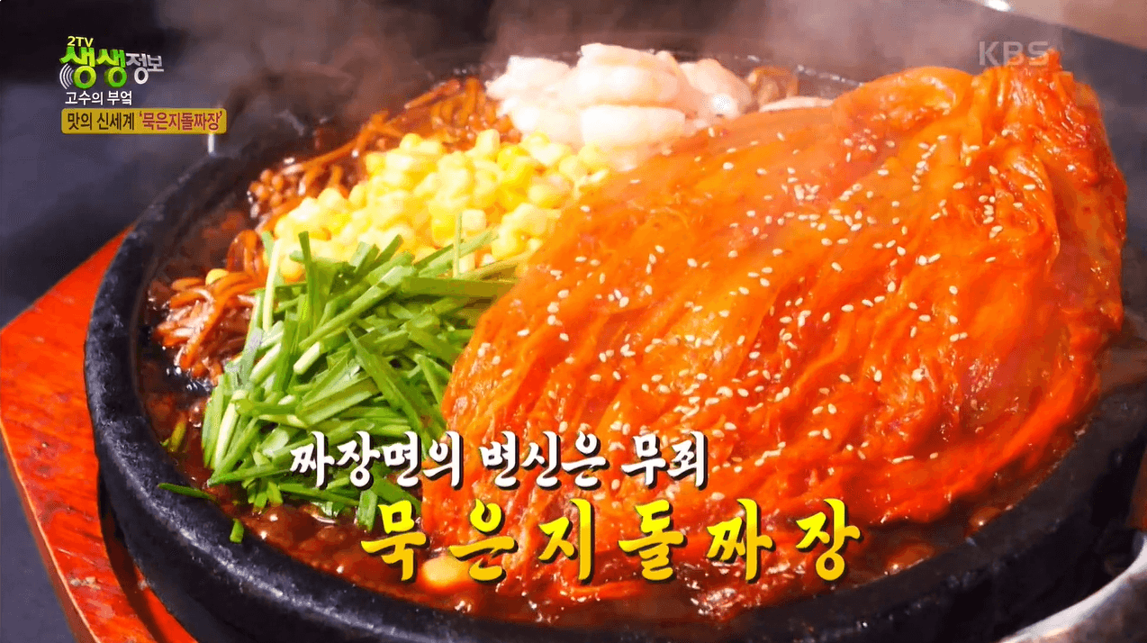 지난 11월 8일에 방송된 2161회 [2TV 생생정보]에는 흔하지만 특별한 메뉴인 묵은지 돌짜장이 소개되었다. 고수들의 비법이 소개되는 코너 <고수의 부엌>에 소개된 대전에 위치한 산내돌짜장면이 그 주인공이다. 짜장면은 짜장면인데 돌짜장, 그것도 묵은지를 곁들인 짜장이라니.. 메뉴에서부터 고수의 향기가 풍긴다.