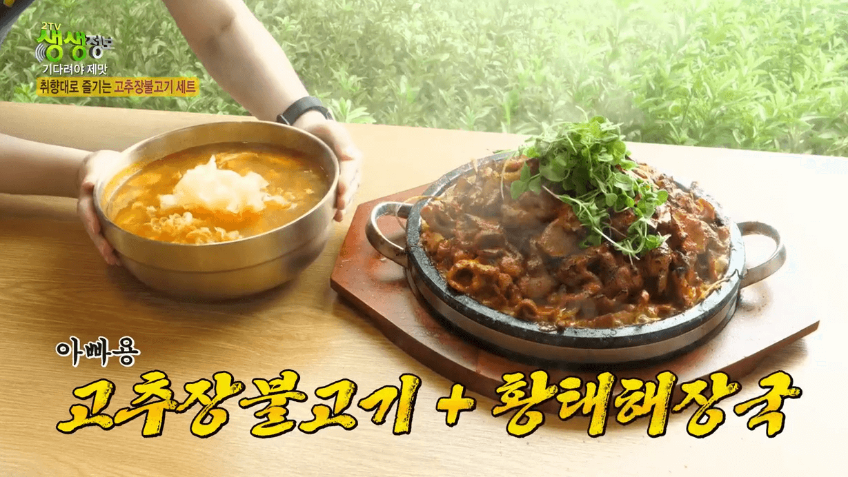 여주고추장불고기에는 몇 가지 특색이 있었는데, 아빠용 고추장불고기는 황태해장국과 고추장불고기가 같이 나오고 엄마용 고추장불고기는 월남쌈과 고추장불고기가 같이 나오는 형태이다. 뿐만 아니라 양이 많아서 4인용은 없다고 공지하는 것에서도 사장님의 센스가 돋보인다. 사장님이 살짝 소개한 비법은 고추장불고기에 간장 대신 참치액을 넣으며 고추장 양념에 베트남 고춧가루를 섞는 것이다. 뿐만 아니라 황태 해장국에 보릿가루를 넣어서 구수함을 더한다.