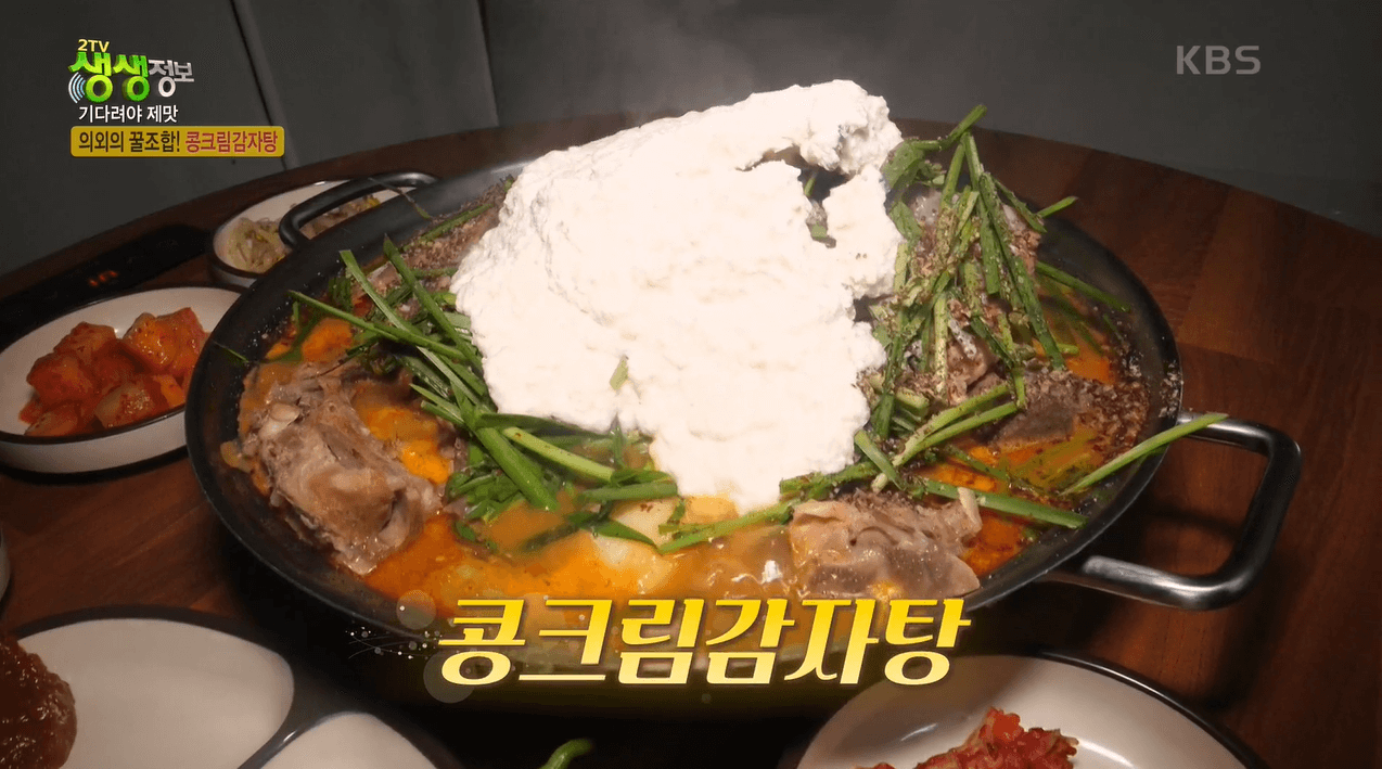 지난 9월 27일 방송된 2136회 [2TV 생생정보]에는 콩크림감자탕 맛집이 소개되었다. 긴 줄을 서야 먹을 수 있는 가게를 소개해주는 코너 <기다려야 제맛>에 소개된 강릉초당콩감자탕이 그 주인공이다. 감자탕은 흔한 메뉴인데, 콩크림감자탕이라니.. 그 이름에서부터 맛이 기대된다.