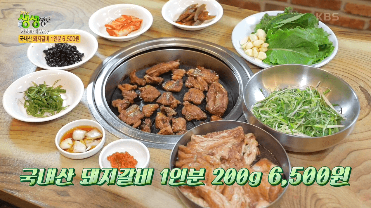 - 메 뉴 : 돼지왕갈비(6,500원), 생삼겹살(9,000원), 칡냉면(6,000원) 등