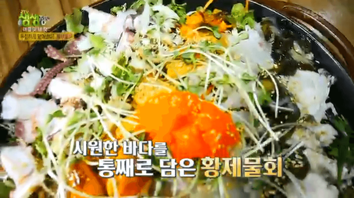 | 철판해물전골(2TV 생생정보 방송 캡쳐) | 황제물회(2TV 생생정보 방송 캡쳐) |