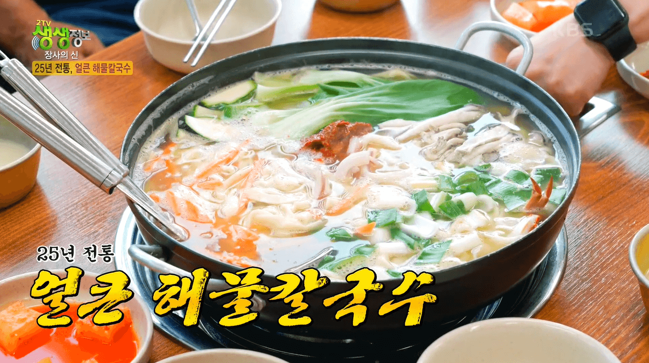지난 11월 4일 방영된 2157회 [2TV 생생정보]에는 25년 전통의 얼큰 해물칼국수 맛집이 소개되었다. 단순히 음식뿐만 아니라 사장님의 인생을 알 수 있는 맛집 소개 코너인 <장사의 신>에 소개된 새집손해물칼국수가 그 주인공이다. 해물칼국수 가게에서 막걸리도 무료로 제공하고 있는 이 가게가 궁금해진다.